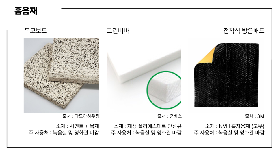 흡음재부터 차례대로 알아보자!